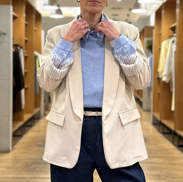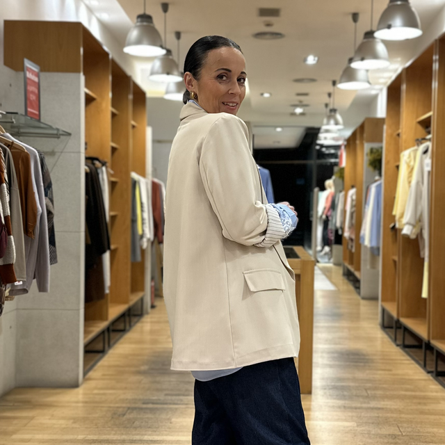 Americana tipo blazer,sin abotonadura y de corte largo. Talla única, la recomendamos para tallas comprendidas entre la S y la L.